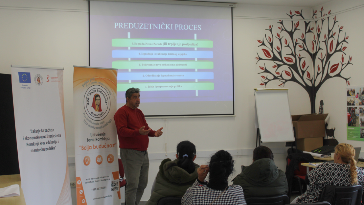 U okviru projekta „Program jačanja kapaciteta i ekonomskog osnaživanja žena Romkinja kroz edukaciju i mentorsku podršku“ tokom protekle sedmice, 18.-19.03.2026. godine, održane su četiri radionice na temu izrade biznis plana u Društvenom centru Kiseljak.