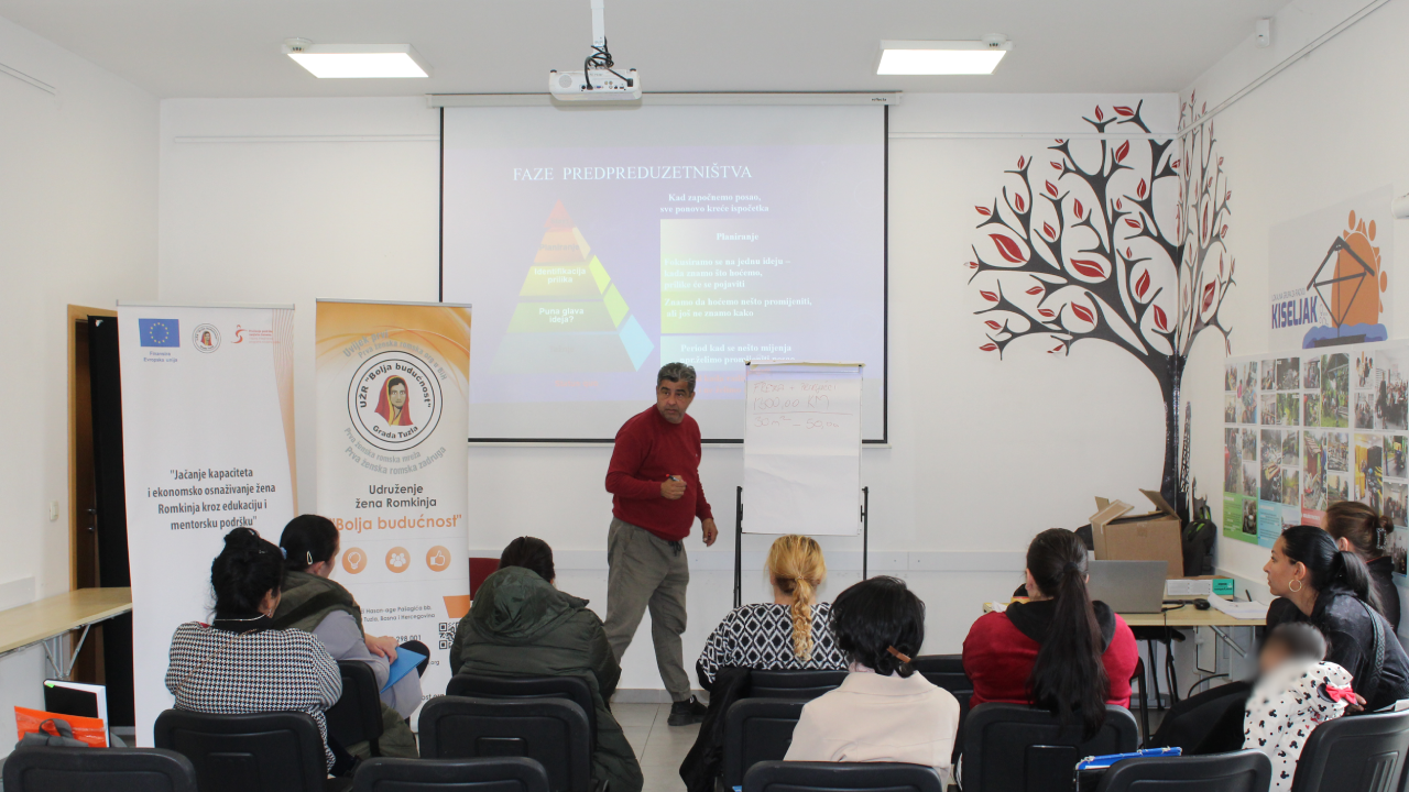 U okviru projekta „Program jačanja kapaciteta i ekonomskog osnaživanja žena Romkinja kroz edukaciju i mentorsku podršku“ tokom protekle sedmice, 18.-19.03.2026. godine, održane su četiri radionice na temu izrade biznis plana u Društvenom centru Kiseljak.